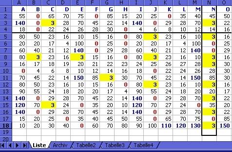 Ich verwende Excel 97 und möchte in einer Spalte (z.B. N) nach einem bestimmten Wert (z.b.3) suchen. Es soll erst ab der 5. Zeile mit der Abfrage begonnen werden. Die Zeilen mit dem gesuchten Wert, sollen dann in ein neues Blatt mit Namen «Archiv» verschoben werden. Ich benutze in der Tabelle «Gültigkeitskriterien» und «bedingte Formatierungen».
