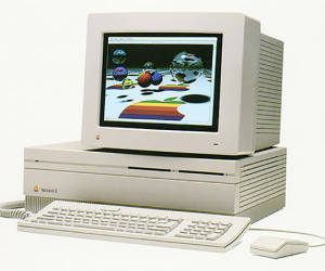 1987: Der Macintosh II galt als wahrer Athlet. Er konnte durch NuBus-Steckplätze erweitert werden. Der Hingucker war jedoch der 13-Zoll-Monitor mit 16.8 Mio. Farben – ein Trinitron-Monitor, der von Sony gebaut wurde.