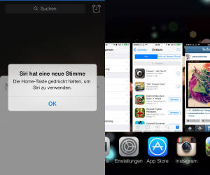 Siri hat eine neue Stimme erhalten und grüsst nun auch als deutscher Mann. Laut dem Tester zeigt Siri neu auch Hilftexte an, versteht mehr Worte und diese auch besser. Zudem soll der Application Switcher um einiges runder laufen.