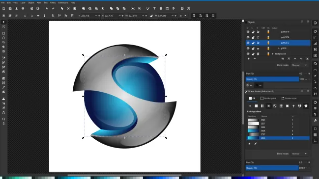Der Vektorgrafikeditor Inkscape ist im Hinblick auf die Grundfunktionen ebenso leistungsstark wie Freehand oder Corel Draw. Es lassen sich Grafikelemente aus Bibliotheken einfügen.