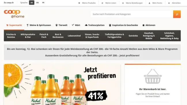 Wir haben uns angeschaut, was der Onlineshop von Coop zu bieten hat. Wie bei der Migros kann man auch bei Coop@Home sein PET loswerden. Ausserdem bringt der Pöstler auf Wunsch den Einkauf. Allerdings gibt es beim Bestellumfang Einschränkungen.