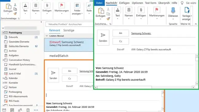 Beim Weiterleiten oder Beantworten einer Mail zeigt Outlook den Antwortbereich direkt im Hauptfenster an. Hätten Sie gerne wieder ein separates Fenster?