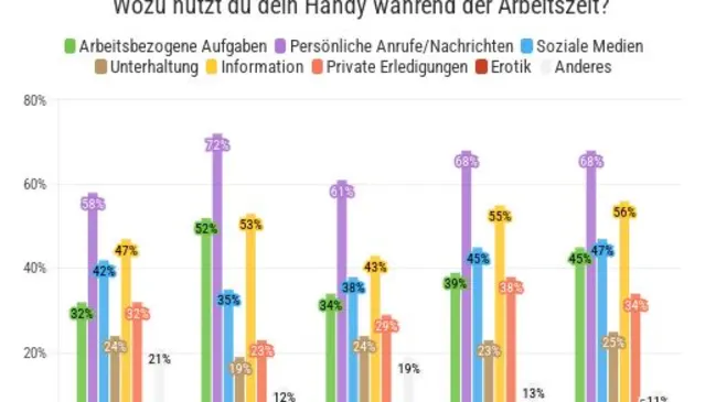 Das Handy wird am Arbeitsplatz primär für private Zwecke genutzt. Und dies geht den Arbeitskollegen je nach Land unterschiedlich stark auf die Nerven, wie repräsentative Umfrage von Galaxus zeigt.