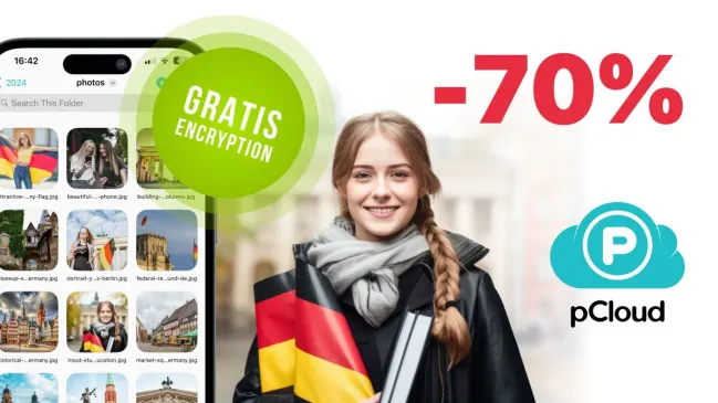Zum Tag der Deutschen Einheit erhalten Sie bei pCloud bis zu 70 % Rabatt auf Lifetime-Speicher – inklusive kostenloser Verschlüsselung. Der Schweizer Anbieter überzeugt mit strengen Datenschutzstandards und Einmalzahlung statt Abo-Modell.