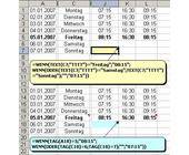 Die Zelle C5 habe ich benutzerdefiniert «TTTT» formatiert, damit es mir das Datum aus der Zelle A5 als Tag angibt. In der Zelle J5 will ich erreichen, dass wenn in der Zelle C5 «Freitag» steht, die Zeit 8:15 eingetragen wird. Bei allen anderen Tagen soll 7:15 eingetragen werden ausser Samstag und Sonntag. Diese Fragestellung haben Sie mit dem Kummerkasten-Artikel 35293 beantwortet und die dort empfohlene Formel =WENN(TEXT(B31;"TTTT")="Freitag";"07:45";"08:45") funktioniert einwandfrei. Nun möchte ich jedoch, dass bei Samstag und Sonntag kein Resultat ausgegeben wird. Geht das?