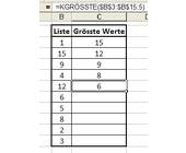Excel: Die 5 grössten Werte aus einer Liste ermitteln