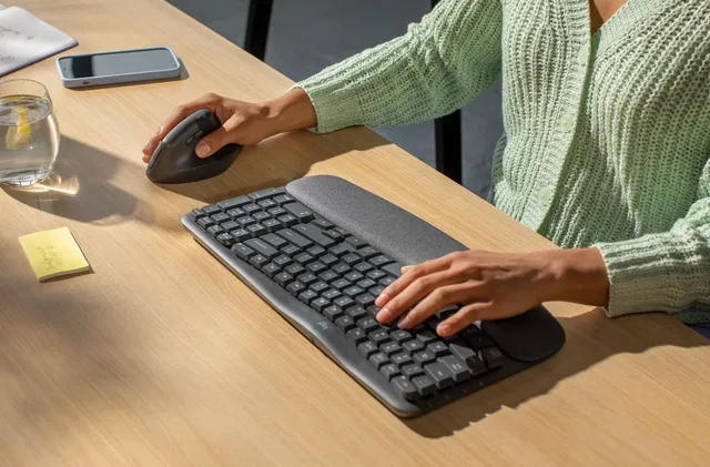 Die «Logitech Wave Keys und Lift Combo» umfasst eine kabellose Tastatur und eine Maus, die beide hohen Wert auf Ergonomie legen. Die beiden Geräte sorgen für eine bessere Haltung von Handgelenk und Unterarm am Schreibtisch. Sie sollen perfekt für kleine bis mittelgrosse Hände passen. Die kompakte Form der Tastatur ermöglicht es, die Maus näher am Körper zu platzieren und so die Schultern beim Arbeiten in eine bequemere, natürlichere Position zu bringen. Die gepolsterte Handballenauflage der Tastatur umfasst drei Schichten mit unterschiedlichen Eigenschaften, um die Handgelenke zu stützen. Das geschwungene Design der Tastatur unterstützt die natürliche Ausrichtung der Hand, des Handgelenks und des Unterarms, während die Tasten für ein taktiles, diskretes und angenehmes Tippgefühl sorgen.