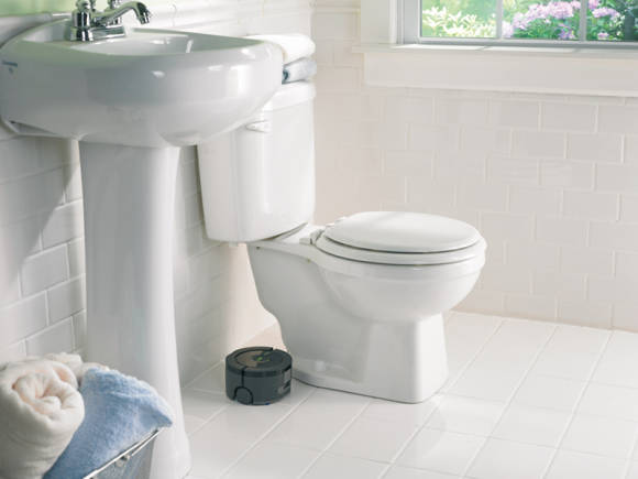 Der Wischroboter iRobot Scooba 230 nimmt Böden in Küche und Bad feucht auf. Dank kleiner Abmessungen gelangt er auch in verwinkelte Ecken.