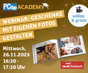 Das grosse Webinar-Finale 2025: PCtipp veranstaltet am 26. November mit dem Fotobuch-Profi CEWE das Webinar «Geschenke mit eigenen Fotos gestalten». Wir zeigen, wie sich aus den schönsten Fotos ein individuell gestaltetes Fotoalbum respektive Kalender erstellen lässt.