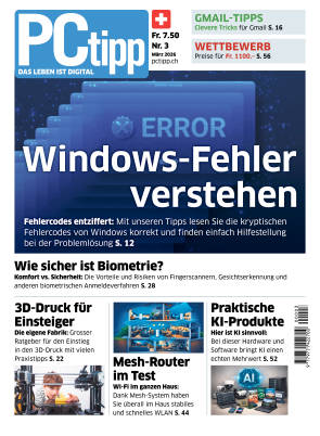 Ab dem 27. Februar 2026 wird das neue PCtipp-Magazin 3/2026 für Abonnentinnen und Abonnenten sowie am Kiosk erhältlich sein. Es verspricht eine Fülle von spannenden Themen für alle Tech-Begeisterten. Unter anderem finden Sie folgende Praxistipps, Workshops und Kaufberatungen im neusten PCtipp: