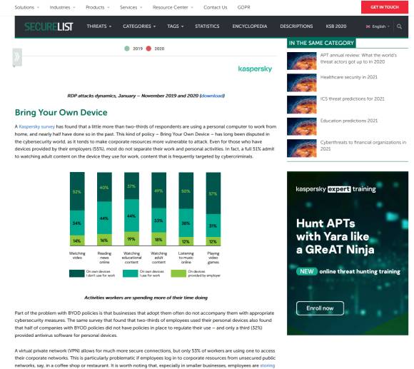 »Dieses Jahr hat uns viel gelehrt. Der Schritt zu einer Remote-Tätigkeit war nicht so reibungslos, wie man sich das vorstellt, vor allem wenn man bedenkt, dass wir bereits in einer, wie wir dachten, digitalisierten Welt lebten«, kommentiert Dmitri Galow, Sicherheitsforscher bei Kaspersky. »Mit der Verlagerung des Schwerpunkts auf Heimarbeit veränderte sich auch der Fokus von Cyberkriminellen. Diese richteten ihre Bemühungen nun darauf aus, von der steigenden Akzeptanz dieses Arbeitsmodells zu profitieren. Auf der einen Seite habe ich mich darüber gefreut, dass dieser Wechsel schnell vonstattenging und die Arbeitswelt weiterhin funktionieren konnte und die Wirtschaft nicht brach lag. Auf der anderen Seite jedoch wissen wir jetzt auch, dass wir alle noch viel über den verantwortungsvollen Einsatz von Technologie lernen müssen, vor allem was den sicheren Austausch von Daten betrifft.«