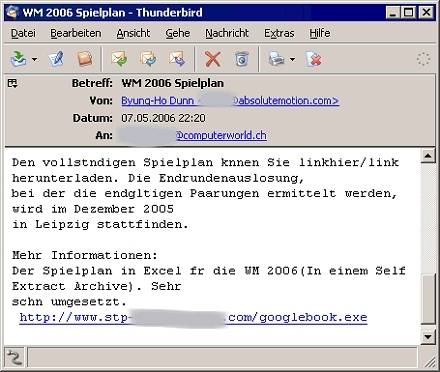 Mehrere Sicherheitsfirmen warnen vor einem heimtückischen Trojaner namens Haxdoor, der sich als WM-Spielplan getarnt Zugriff auf fremde PCs verschaffen will.