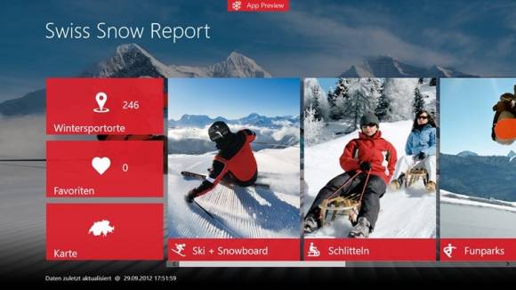 Gestern Abend wurden in Zürich zum zweiten Mal die Swiss App Awards gekürt. Dabei wurden aus 229 Einsendungen die besten Apps «made in Switzerland» in zahlreichene Kategorien gekürt. Berücksichtigt wurden Apps für iOS, Android, Windows Phone und Windows 8. Und für die letztgenannte Plattform wurde auch der Sieger der diesjährigen «App of the Year»-Auszeichnung entwickelt: «Swiss Snow Report» von Enrico Gebauer. Die App für Windows 8/RT bietet Schnee- und Wetterberichte sowie Angebote zu 250 Schweizer Wintersportdestinationen.