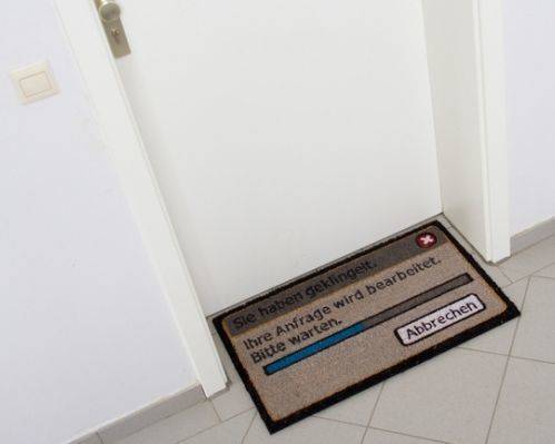 Wenn Sie diese Fussmatte vor Ihre Wohnungstür legen, wissen die Gäste Bescheid, wenn das Öffnen der Tür ein bisschen länger dauert.