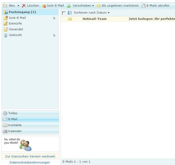 Microsoft ersetzt das mittlerweile über zehn Jahre alte Hotmail durch «Windows Live Hotmail» und verspricht sich davon ein schnelleres und sichereres E-Mail-System.