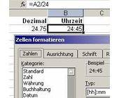 Wie kann in Excel die Stundenzahl (dargestellt in Industrieminuten) 24.75 in Stunden und Minuten 24:45 umgewandelt werden. Anmerkung: Wenn die Stundenzahl <24 ist funktioniert es mit /24