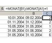 Ich möchte in Excel die Anzahl der Monate bestimmen. Die Funktion Datedif funktioniert leider nicht ganz so, wie ich es brauche weil ich alle angebrochenen Monate zählen will. Beispiel: Anfangsdatum 10.01.2004 Enddatum 09.02.2004 ergibt mit «Datedif» als Ergebnis 1. Ich brauche aber als Ergebnis 2, weil 2 Monate angebrochen sind. Es soll also jeder angebrochen Monat gezählt werden.