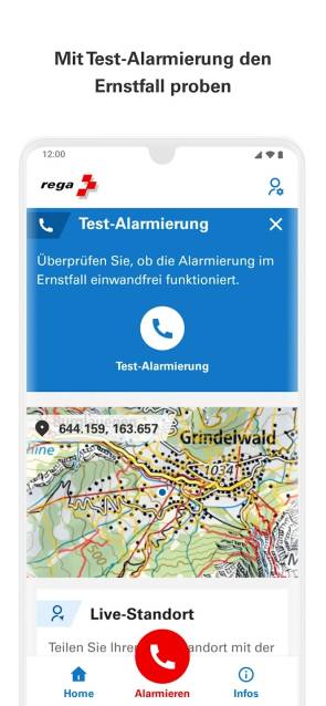 ● Die Rega-App ermöglicht den direkten Notruf an die Schweizerische Rettungsflugwacht, Bild 2. Per Knopfdruck werden Standort sowie Akkustand des Handys übermittelt und eine Telefonverbindung aufgebaut. Die App erhöht allerdings den Stromverbrauch Ihres Handys. Immerhin wird man gewarnt, wenn der Akkustand bedenklich tief ist.