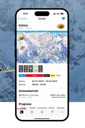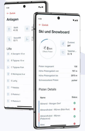 Nicht jeder will spuren, schaufeln und die LVS-Nutzung (Lawinenverschüttetensuchgerät) üben – für viele zählt der perfekte Tag auf der Piste. Auch hier gibt es Apps mit klarer Schweiz-Ausrichtung.