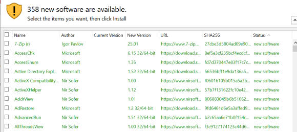 Zuletzt zeigt der Update Manager noch eine Zusammenfassung, welche Tools er gefunden hat. Setzen Sie oben links das Häkchen vor dem Eintrag Name, um alle auf einmal auszuwählen, Bild 11. Klicken Sie zuletzt auf Install. WSCC lädt die markierten Tools herunter, kopiert sie auf Ihren USB-Stick und trägt sie zudem in der WSCC-Oberfläche ein. Das dauert eine Weile.