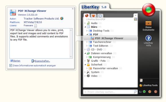 Bild 9: Der LiberKey-Starter zeigt zusätzlich ein Fenster mit Infos zum ausgewählten Tool