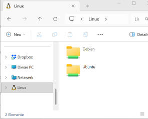 Um von Windows aus auf die Linux-Verzeichnisse zuzugreifen, öffnen Sie den Windows-Datei-Explorer und navigieren erst zu Dieser PC und danach zu Linux, Bild 12. Dasselbe Ziel erreichen Sie übrigens auch, wenn Sie im Adressfeld des Datei-Explorers den Befehl \\wsl.localhost eintippen.