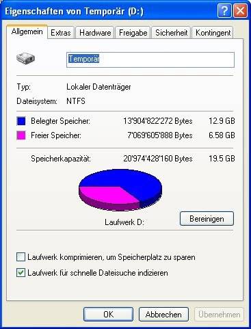 Bei Ihnen wird das Feld Laufwerk komprimieren, um Speicherplatz zu sparen aktiviert sein. Wen Sie dieses desaktivieren, ist der Datenträger anschliessend nicht mehr blau dargestellt.