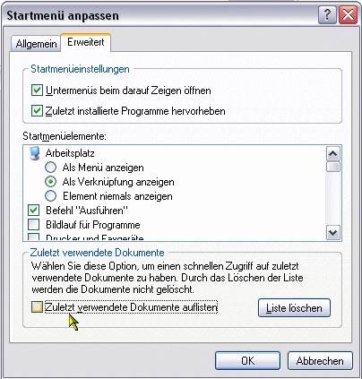 Wie ist es möglich, Windows dazu zu bringen, kürzlich geöffnete Dateien nicht im Ordner «Zuletzt verwendete Dokumente» im Startmenü abzulegen? Oder noch besser, diesen Ordner gleich zu entfernen?