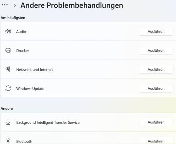 Eine weitere praktische Option: Möglicherweise kommt die Windows-Problembehandlung dem Fehler auf die Schliche. Gehen Sie dazu in den Windows-Einstellungen zu System und danach zu Problembehandlung. Im neuen Fenster klicken Sie auf Andere Problembehandlungen und dort im Abschnitt Drucker auf Ausführen. Folgen Sie den empfohlenen Schritten. Das Windows-Tool kann oft herausfinden, wo das Problem liegt, etwa bei der Verbindung oder falschen Druckereinstellungen, Bild 10.