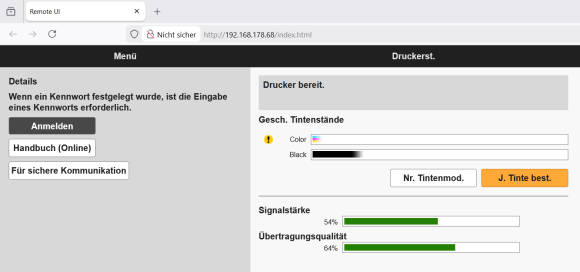 Bild 3: Ist der Drucker verbunden, lassen sich auch die Füllstände der Tintenpatronen auslesen