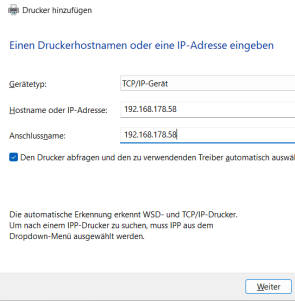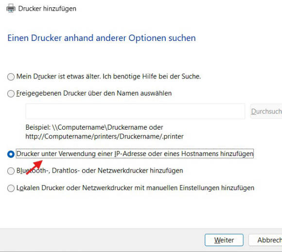 Bild 5: An dieser Stelle lassen sich Drucker unter Verwendung einer IP-Adresse oder eines Hostnamens hinzufügen