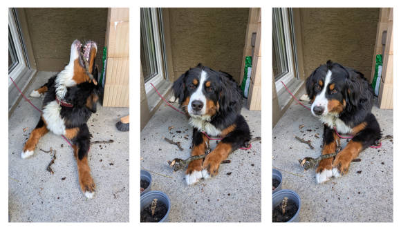Gerade bei bewegungsfreudigen Hunden – etwa beim Rennen, Spielen oder Springen – ist es kaum möglich, den perfekten Moment mit einem einzigen Foto zu erwischen. Einfacher geht es mit dem Serienbildmodus. Mit diesem schiesst Ihr Smartphone innert einer Sekunde mehrere Fotos, aus denen Sie das Beste aussuchen können, Bild 2.
