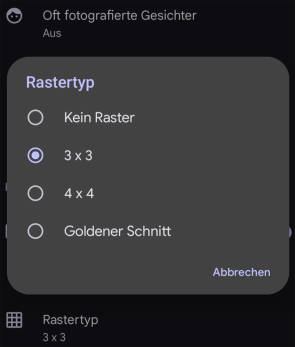 Bei Android und iOS aktivieren Sie die Rasterlinien in den Kameraeinstellungen. Falls Sie aufgefordert werden, einen Rastertyp auszuwählen, greifen Sie zu 3 × 3, Bild 3.
