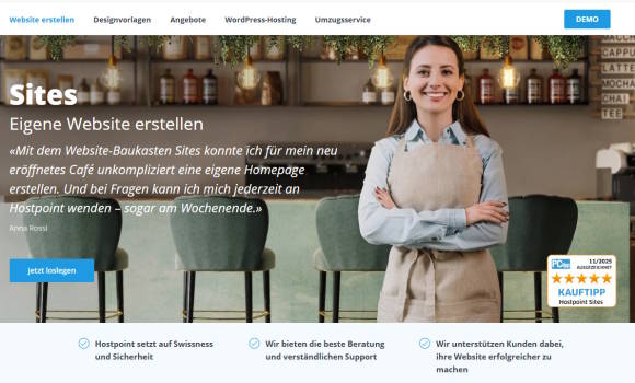 Hostpoint stellt für Endanwender eine hochmoderne, schnelle und sichere Hosting-Umgebung zur Verfügung. Die Webseite läuft auf schnellem SSD-Hosting (NVMe) in einem für Banken zertifizierten Schweizer Rechenzentrum. Das bedeutet: maximale Geschwindigkeit und Zuverlässigkeit fürs Onlineprojekt. Schon die Basis-Pakete beinhalten 100 GB Webspeicherplatz, unbegrenzt E-Mail-Postfächer mit jeweils 5 GB, zehn Domains für verschiedene Ideen und zehn Datenbanken. Der Support ist an 365 Tagen im Jahr da.