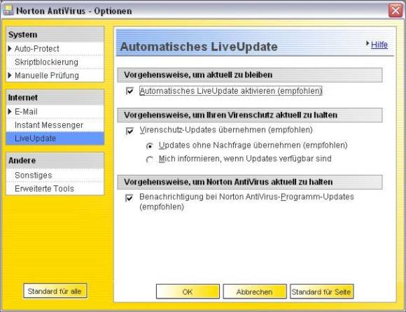 Das Live Update lässt sich ausschalten, dies ist jedoch nicht unbedingt empfehlenswert. Dadurch erhalten Sie keine automatischen neuen Updates.
