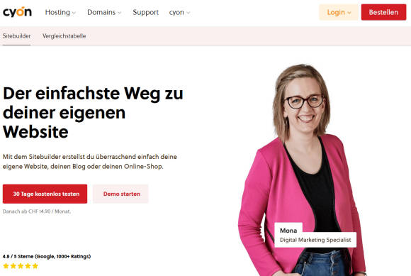 Fazit: Der Sitebuilder von Cyon bietet für jeden Bedarf eine passende Lösung – vom Einsteiger bis zum Experten. Das Baukastensystem ist nutzerfreundlich und führt schnell zu professionellen Ergebnissen.
