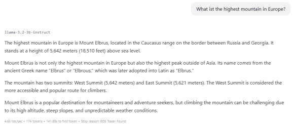 Bild 2: Llama 3.2 von Meta ist ein fortschrittliches KI-Modell, das auf Fragen sehr ausführlich antwortet