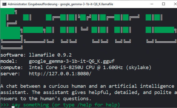 Bild 5: Llamafiles laufen in der Eingabeaufforderung und lassen sich auch dort bedienen