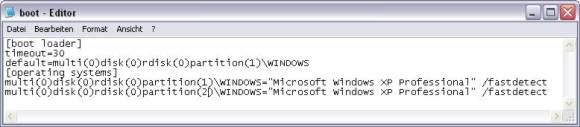 Ich habe bereits den Kummerkasten (Meldung 25300) schon gelesen, habe aber trotzdem eine Frage, damit ich nicht die falsche Partition lösche. Ist bei der angegebenen Datei (boot.ini) die Aufstellung auch gleich wie beim Auswahl-Bildschirm beim Aufstarten? Also sind beide Partitionen gleich aufgelistet wie sie beim Aufstarten angezeigt werden?