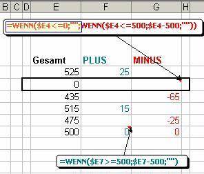 Besten Dank für Ihre Lösung unter Webcode 34752. Jetzt habe ich aber ein kleines Problem bei den Minus-Minuten. Wenn keine Gesamt-Minuten eingetragen sind, erscheint in dieser Minus-Spalte überall -500 und somit am Ende der Spalte nach 30 Tagen ein Minustotal von 15'000 Minuten und das ist natürlich falsch. Wie kann ich diese Spalte auf 0 setzen, wenn nichts berechnet werden müssen?