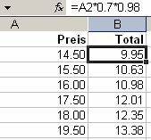 Die Formel für die Berechnung der 14.50 lautet demzufolge 14.5*0.7*0.98