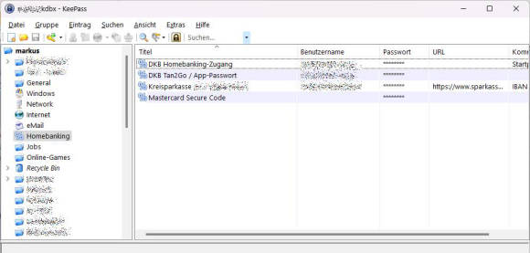 Bild 9: Sie können in KeePass neue Kategorien nutzen, Passworteinträge festlegen und diese per Mausklick in Log-in-Seiten übertragen