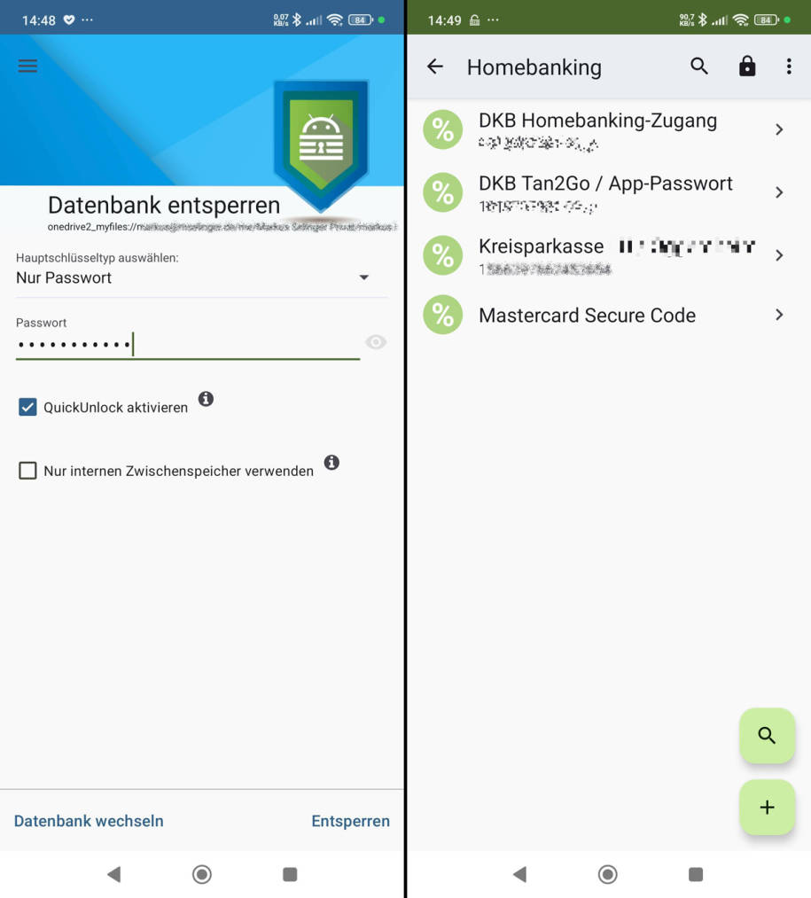 Bild 12: Die KeePass-App für Android greift auf ihre Passwortdatei in der Cloud zu