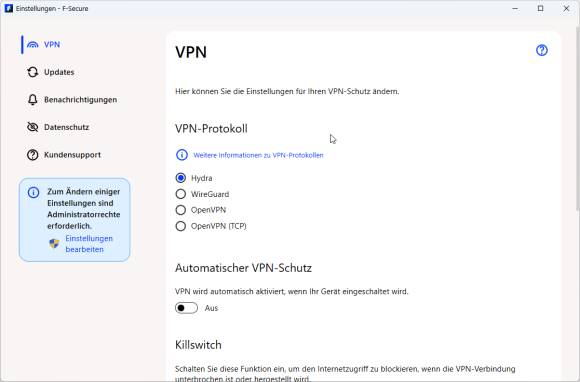 Bild 7: In vielen VPN-Tools lässt sich das Protokoll wählen – hier F-Secure VPN