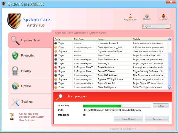 Bild 10: Die Scareware System Care Antivirus ist zwar ein alter Fall, aber das Vorgaukeln einer Virusinfektion hatte funktioniert