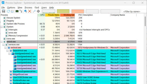 Bild 11: Der Process Explorer liefert deutlich mehr Informationen über Prozesse als der in Windows enthaltene Task-Manager