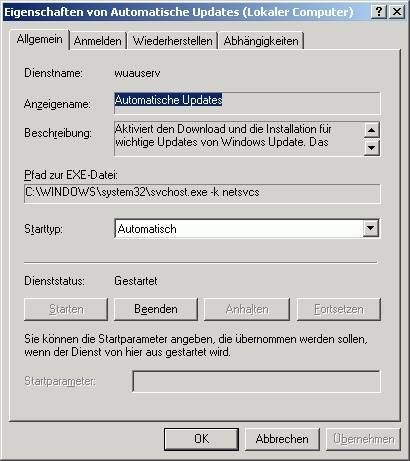 Ich kann unter «Systemsteuerung/System/Automatische Updates» keine Einträge vornehmen. Sämtliche Eingabefelder sind grau hinterlegt und es erscheint der folgende Hinweis: «Der Dienst "Windows-Update" ist nicht verfügbar». Wo bzw. welche Einstellungen muss ich vornehmen, damit eine automatische Benachrichtigung wieder funktioniert?