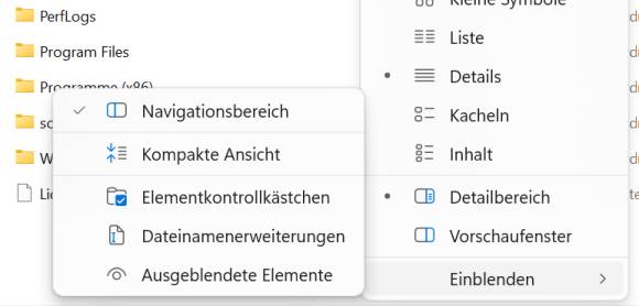 Die meisten Anwender verwenden entweder die Ctrl- oder die Shift-Taste, wenn sie mehrere Dateien in einem Ordner markieren und danach beispielsweise an eine andere Stelle kopieren wollen. Nicht selten kommt es dabei aber vor, dass man sich verklickt oder eine der Tasten zu früh loslässt. Der Windows-Explorer kann Felder vor jeder Datei einblenden, die Sie bequem an- oder abhaken können. Unter Windows 11 klicken Sie dazu erst auf Anzeigen, scrollen bis zu Einblenden und wählen dort Elementkontrollkästchen aus, Bild 8.