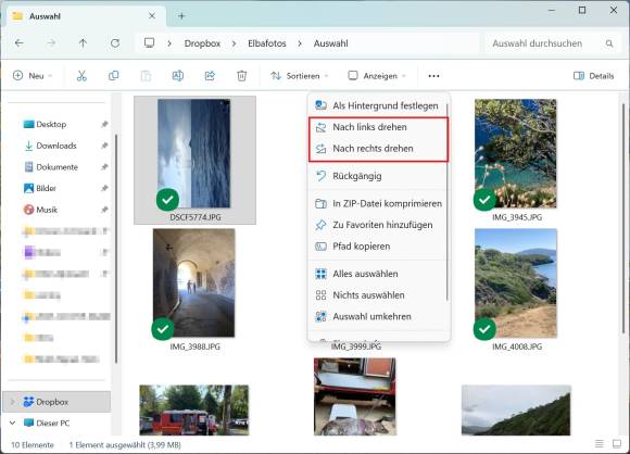 Bild 9: Mit dem Datei-Explorer von Windows 11 können Sie Ihre Fotos auch gleich drehen