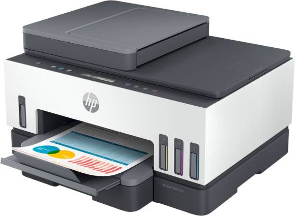 Der HP Smart Tank 7305 besticht durch sein preiswertes Tintentanksystem. Das Multifunktionsgerät kommt ganz ohne Tintenkartuschen aus. Stattdessen werden die integrierten Tanks mit Tinte aus Flaschen befüllt, was nicht nur sehr einfach funktioniert, sondern auch sehr preiswert ist. Die Tanks sollen laut HP für bis zu 12 000 Schwarz-Weiss- bzw. 8000 Farbseiten reichen.